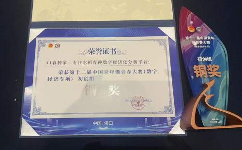 “AI育种家”项目聚焦智慧育种国家战略,通过人工智能与大数据分析,实现作物性状精准设计与育种效率跨越式提升,充分体现“政经融合、知行合一”的育人成效。此次获奖是学院在“创青春”国赛中的历史性突破,彰显了羞羞漫画 在跨学科创新人才培养方面的扎实作为。